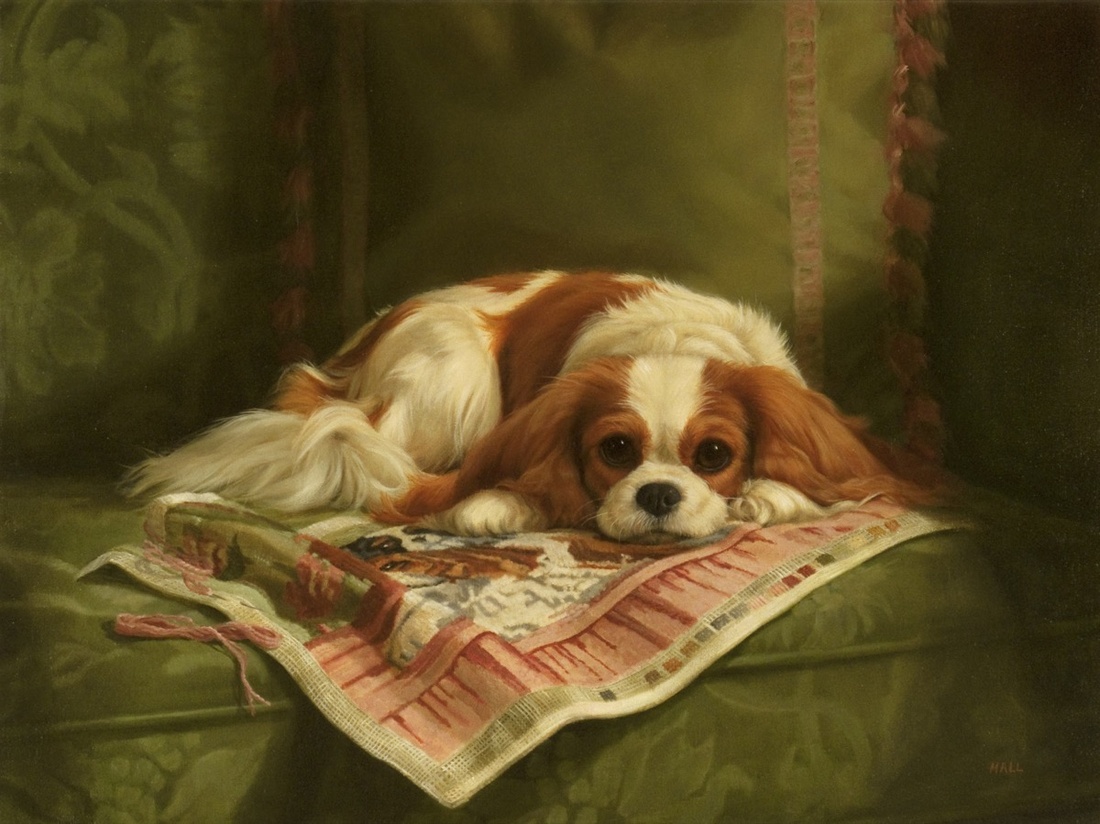 Pamela Dennis Hall, Recumbent Cavalier King Charles Spaniel, 2009. Courtesy of William Secord Gallery.