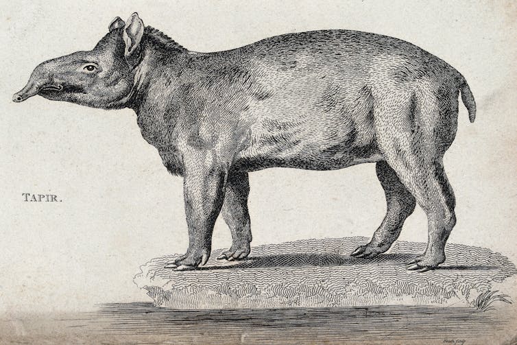 On the other side of the Americas and almost at the same time, Félix de Azara attributed the same property to the hooves of the Paraguayan tapir, a large herbivorous mammal, with a short, prehensile snout, that inhabits forest regions of South America. The animal was called “gran bestia” by the Spaniards and “anta” by the Portuguese. Since then, every time the tapir was described, in no matter which region of South America, the medical virtues of the its hoof reappeared over and over again as a local, native tradition.